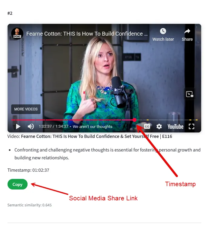 A search engine that finds the exact moment something was said across an entire YouTube channel in under a second.